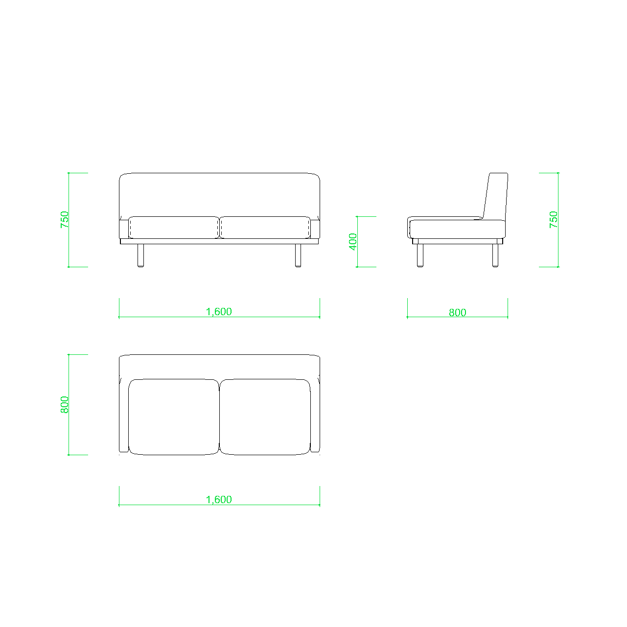 CAD, Vector Sofas in Front View - Student License。