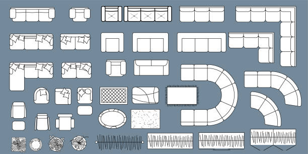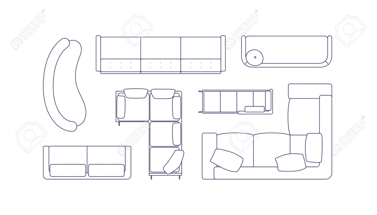 ソファ平面図セット ベクトル イラスト インテリア 1のイラスト素材・ベクター Image 45061457。