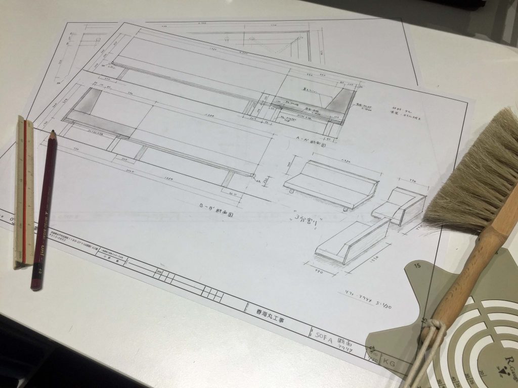 ソファの手描き図面 - ono設計室ブログ。
