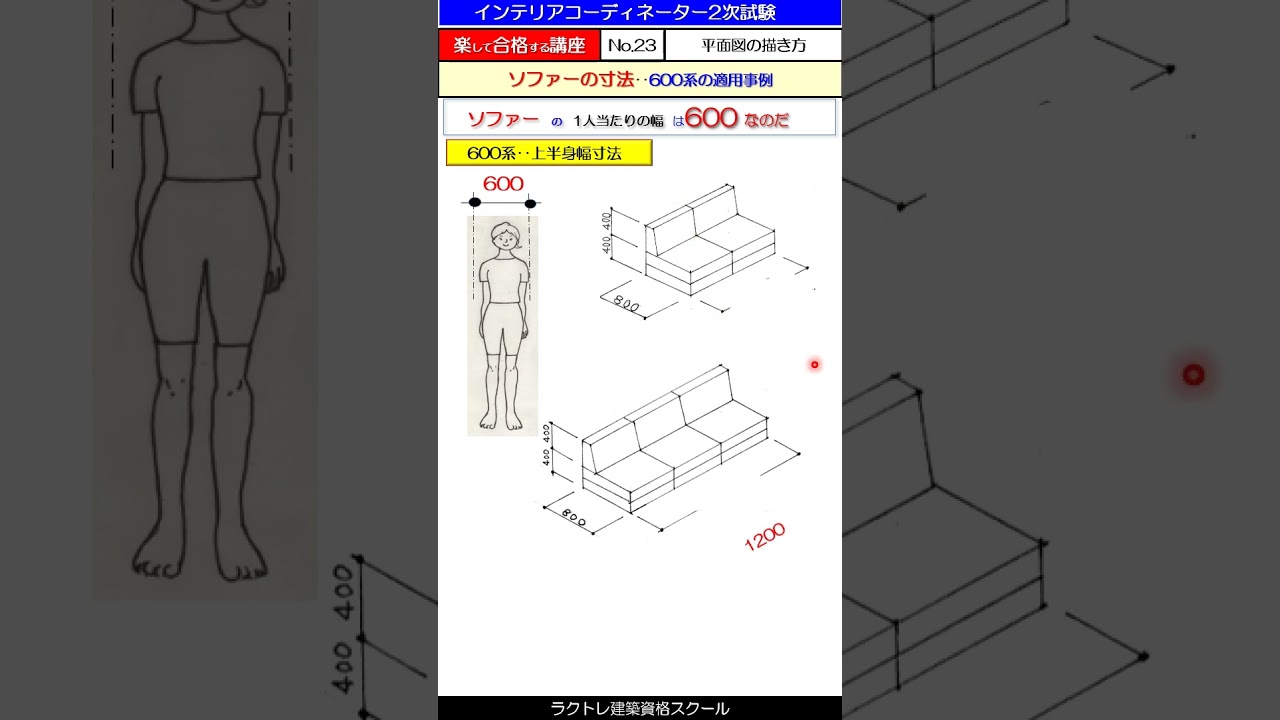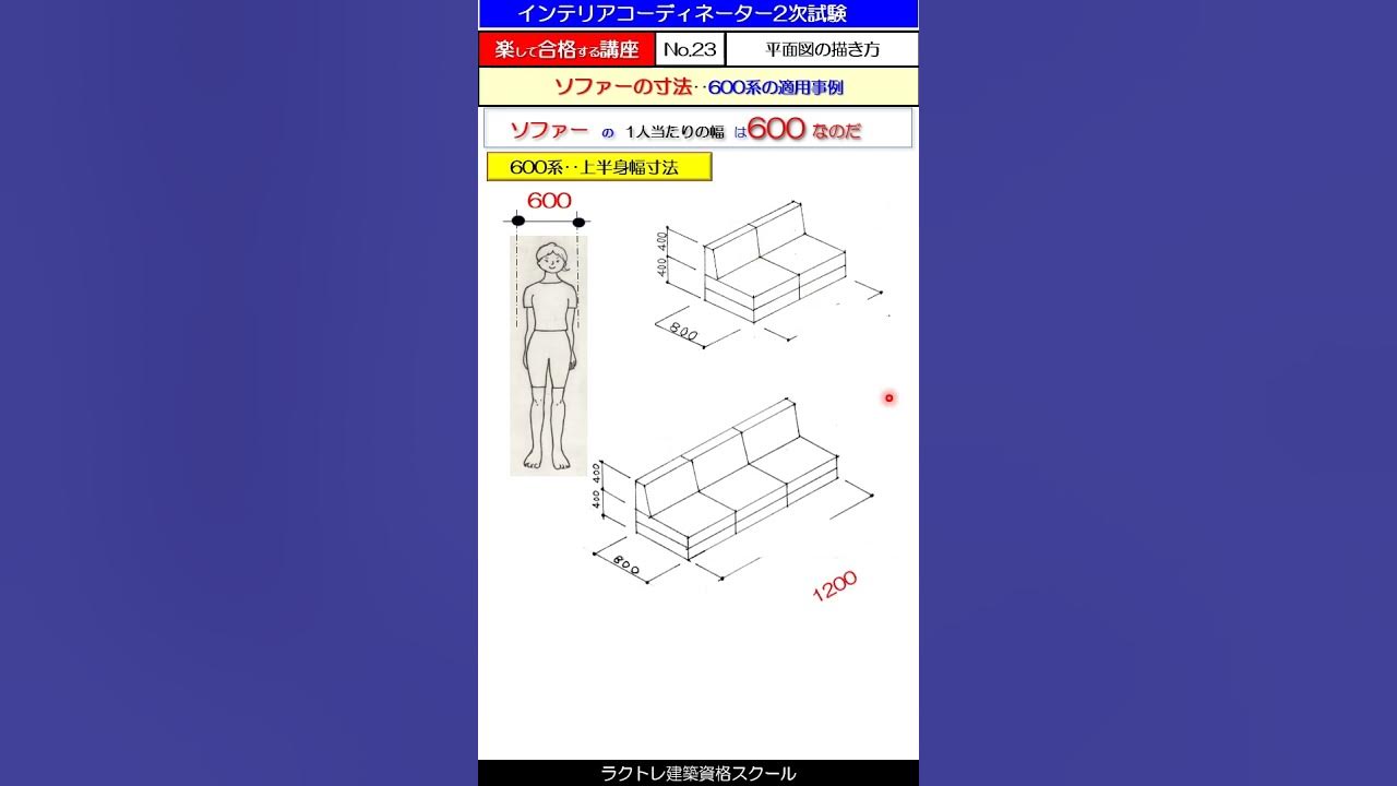 ソファー寸法の求め方 600系‥楽合講座N0.23‥平面図描き方シリーズ インテリアコーディネーター2次試験平面図の描き方インテリアコーディネーター勉強中ソファー寸法の求め方。