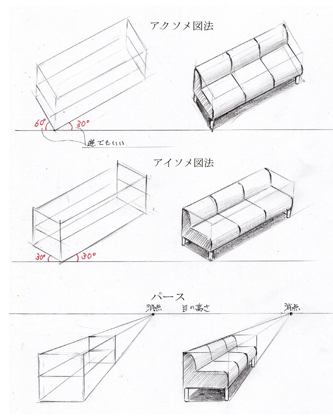 手描きパースの阪本一史 on X: "アクソメ、アイソメ、パースのそれぞれのソファーの描き方。 https:t.co dSx2MaT5M0"X。