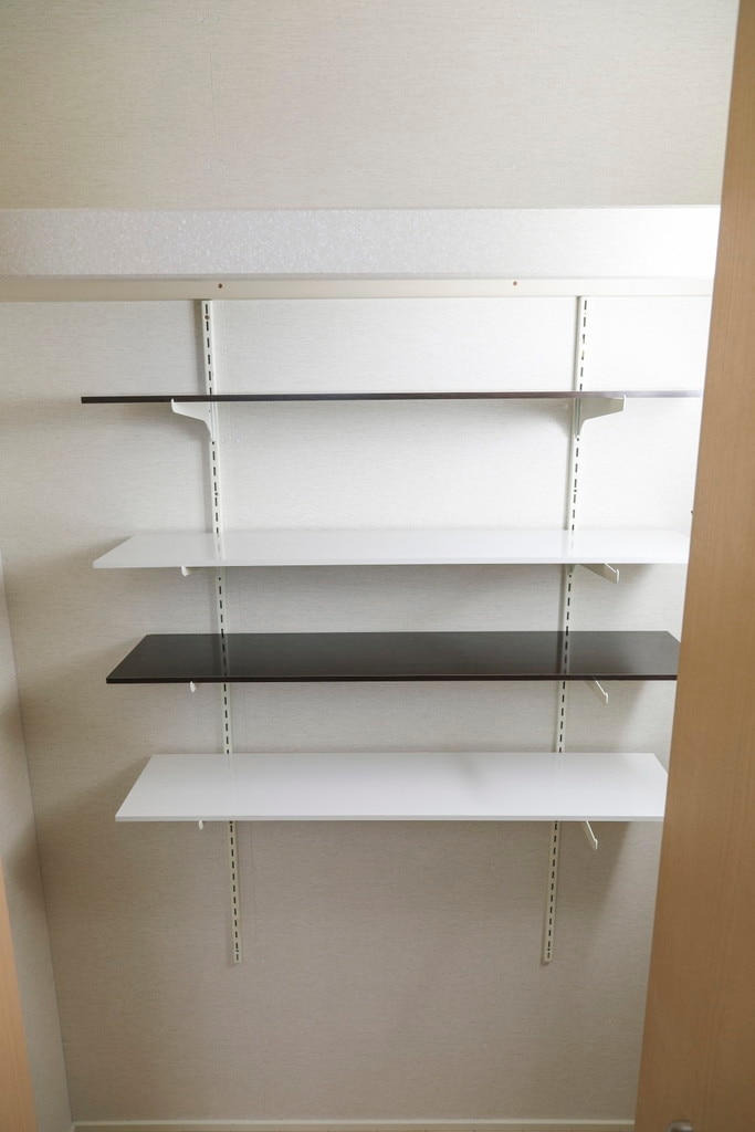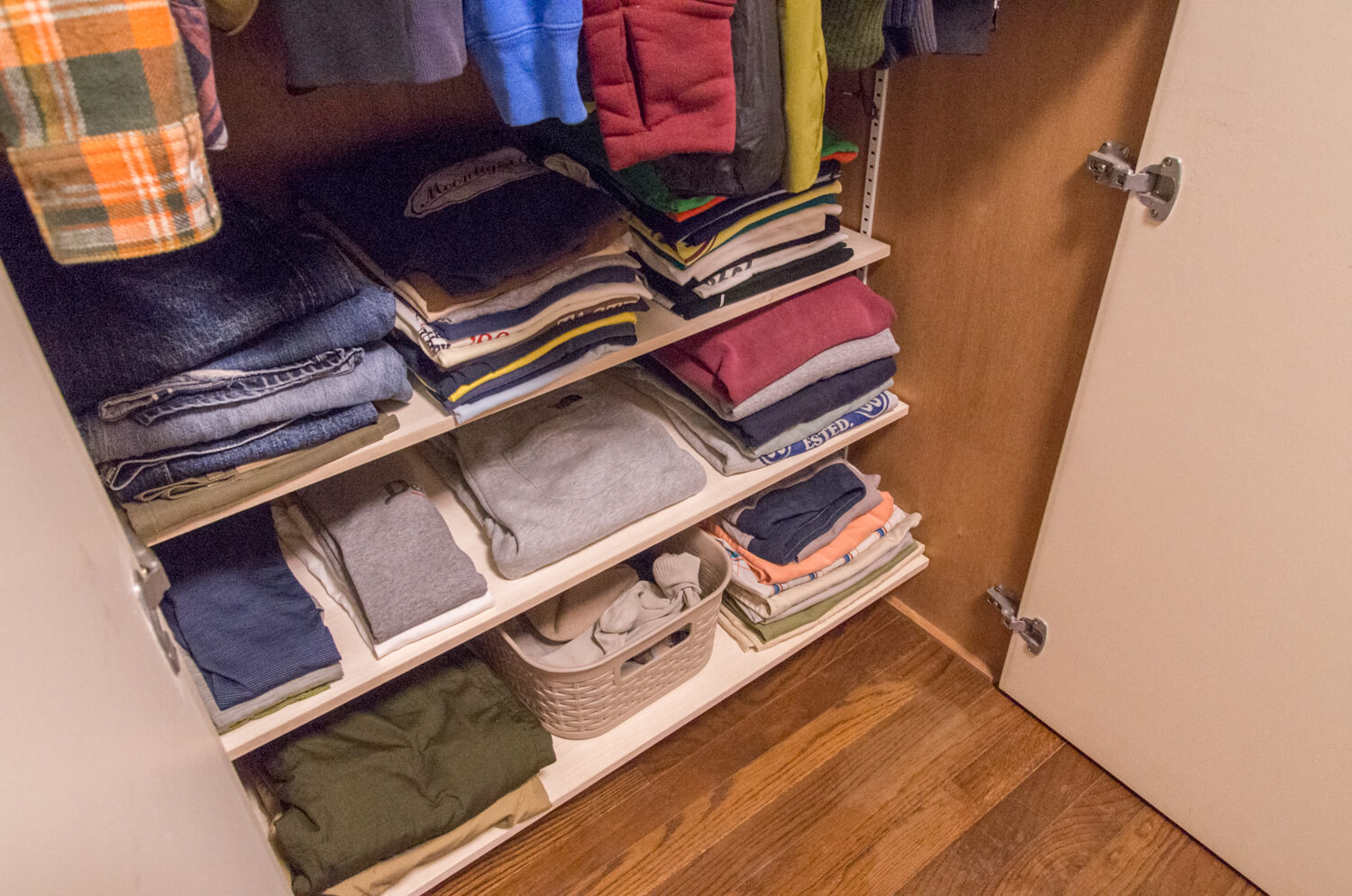 クローゼット 棚板・可動棚を追加増設すると収納量が大幅アップ。
