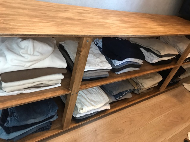 洋服棚をDIYで自作!針葉樹合板2枚を使って3000円以内でおしゃれな木製ラックができました。服屋のようなおしゃれな雰囲気がでておすすめです!つりきゃんぱぱぶ DIY。