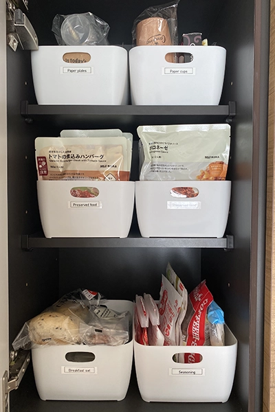 パントリー収納のコツ!プチプラ収納ケースを活用収納All About。