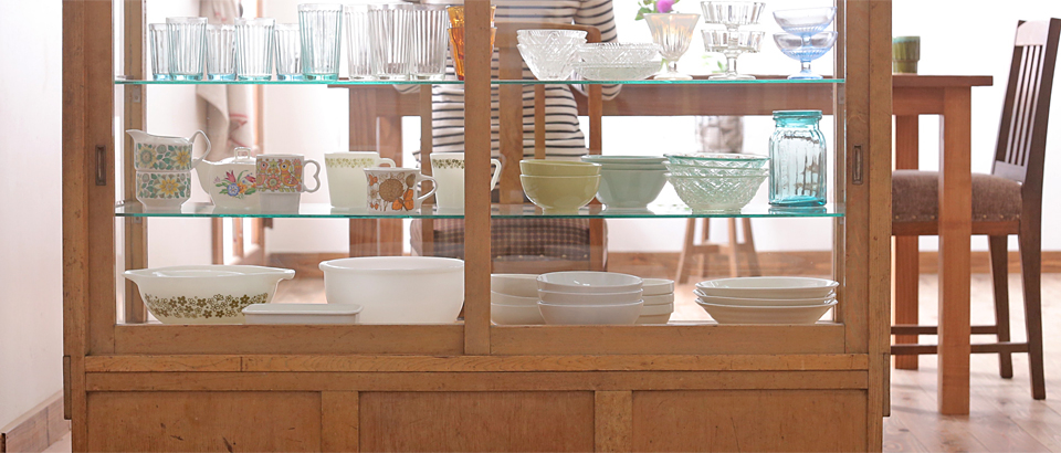 美しい見せる収納術。アンティークガラスケースを食器棚に使うには。