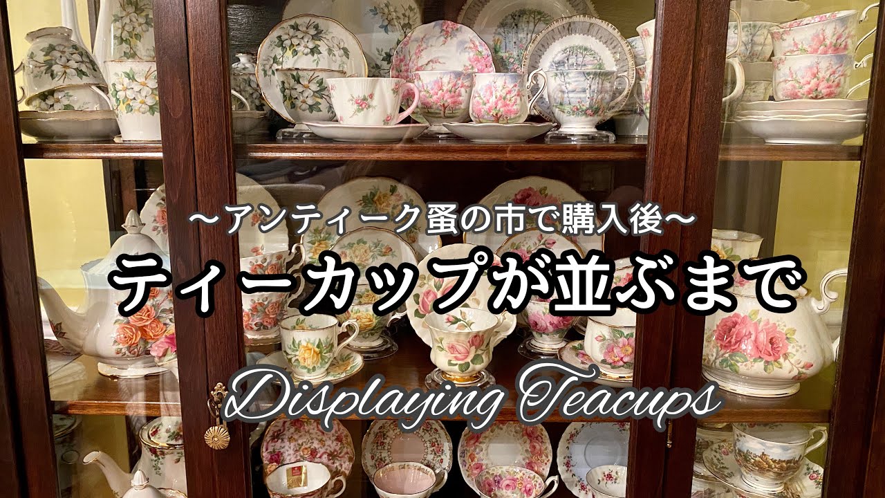 アンティーク蚤の市で買ったティーカップやポットを食器棚収納。