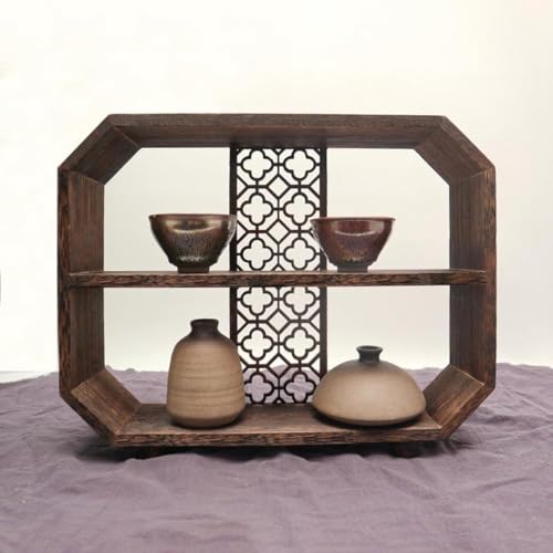 ウッドカップケーキスタンドキャビネットラックチャイニーズスタイルの頑丈なチャイニーズディスプレイスタンドカフェレストランデスクトップ用木製ディスプレイ無垢材ティーカップ収納棚 ティーセットボックスオーガナイザー 中華風ディスプレイラック 卓上ティーポット。
