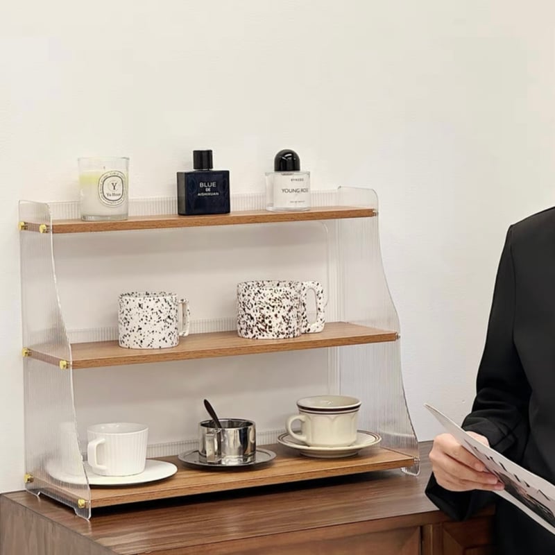 ウッド クリア アクリル 三段 カップ 収納 ディスプレイ ラック70PARK。