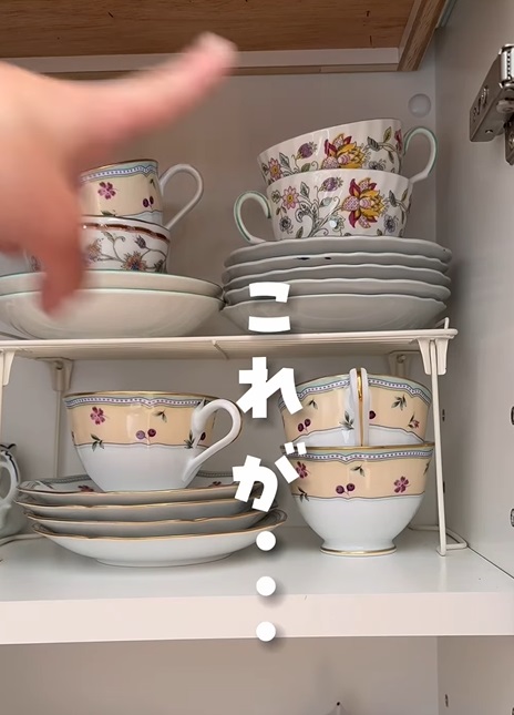 ティーカップがかさばって困るなら? 場所を取らずに食器棚に収納するコツに「ナイスアイディア」 – grapeグレイプ。
