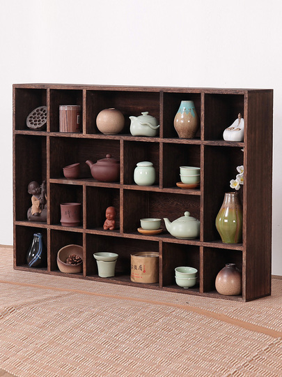 無垢材 ティーカップシェルフ - 日本風ディスプレイラック。