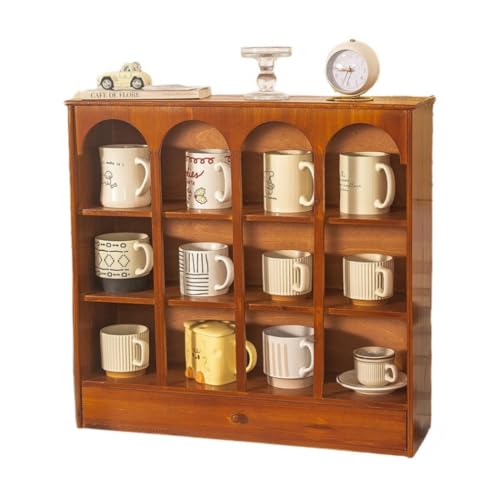 コーヒーマグディスプレイラックオーガナイザーディスプレイティーセットラック多目的デスクトップ木製棚カップホルダーリビングルーム装飾用 ティー セットディスプレイラック、ソーサーとティーカップセットコレクションディスプレイキャビネット、マグラック、コーヒー。
