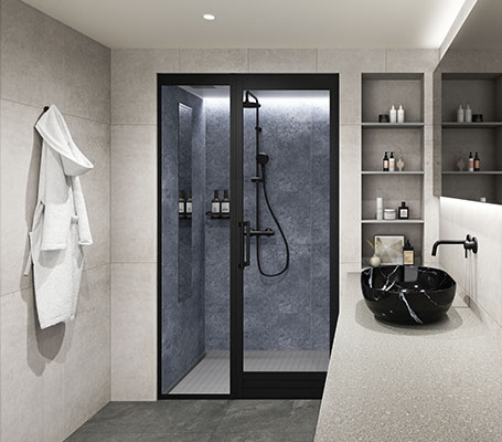 ミニマルな暮らしのシャワールームBAINCOUTURE高級オーダーメイドバスルームブランド。