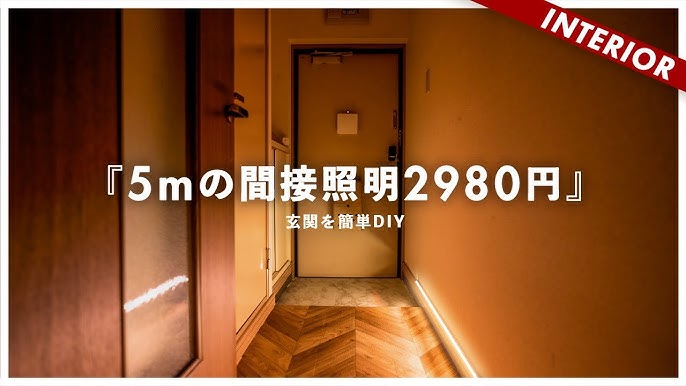 玄関DIY 人が通ると明るくなる間接照明とはがせるフロアシート。