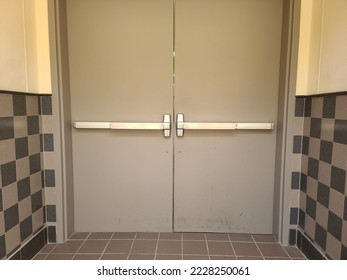 閉じている大きな鋼製の二重ドア。写真素材2228250061Shutterstock。