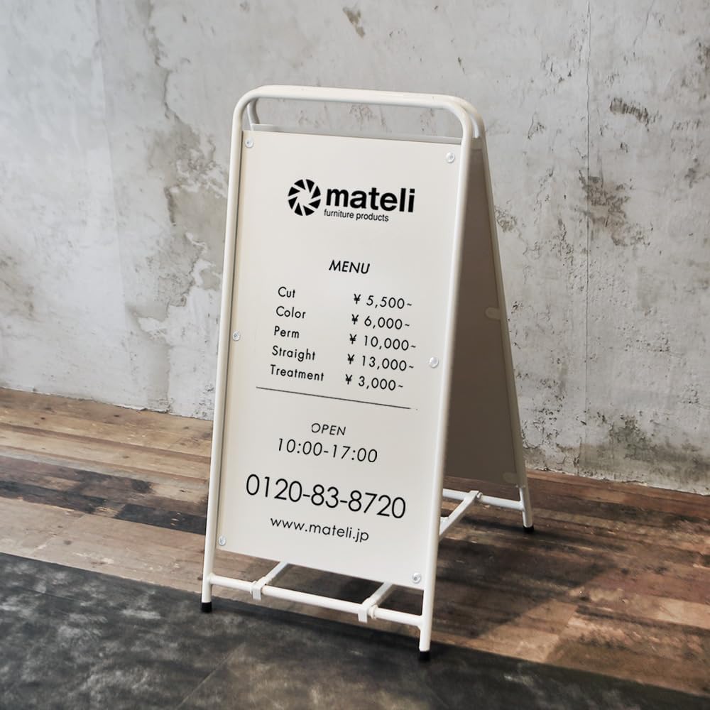 看板 外部用アイアンA型丸パイプ看板パオロ ホワイト 両面 スタンドボード メニューボード。