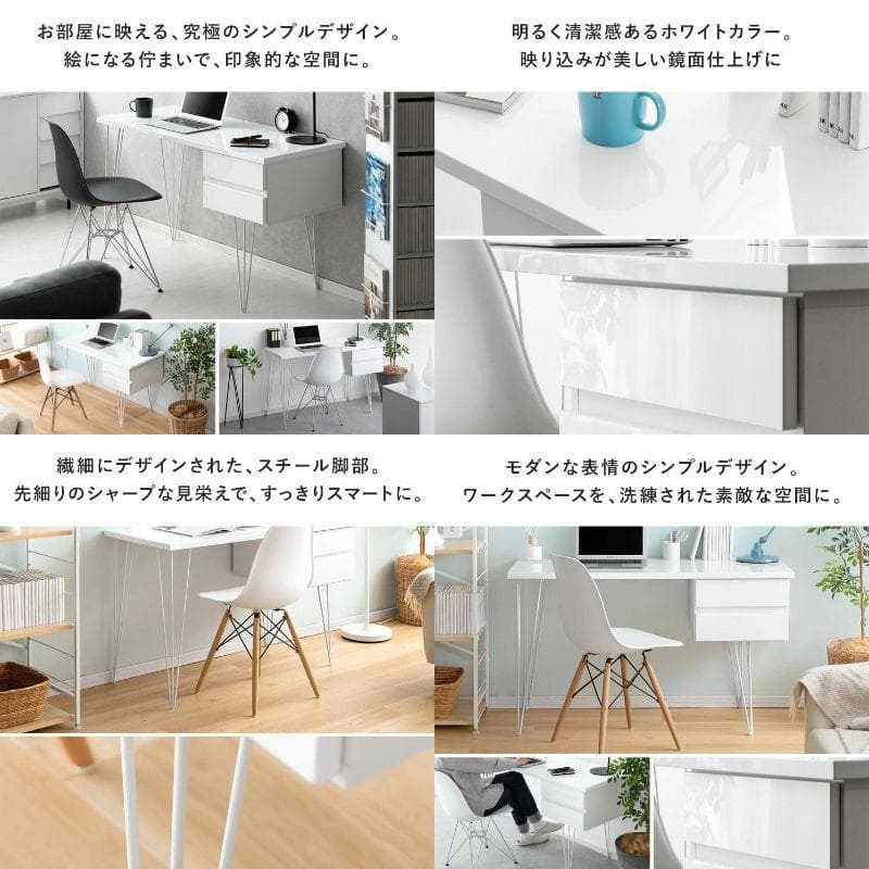 勉強机 白 おしゃれ パソコンデスク 大人 ホワイト pcテーブル テーブル スリム 書斎 デスク 鏡面 pcデスク 学習机 Zero-X12530D nail ●au PAY マーケット。