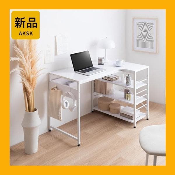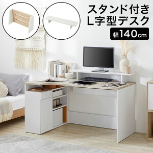 パソコンデスク デスク 140cm 75cm L字型 収納ラック付 PCデスク 省スペース 白 シンプルラック付 木製 机 ワークデスクオフィスデスク ハイタイプ コンパクトデスク コンセント無し L字おしゃれ 収納棚 大人 全4色家具通販カグラボKAGULABO最安挑戦。