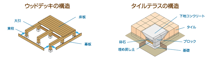 徹底比較! ウッドデッキとタイルテラス、結局どっちがいいの?色んな観点で比較しちゃいます。