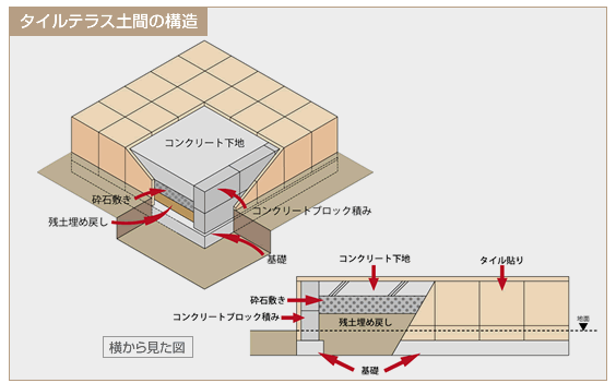 タイルテラス土間の寸法と構造兵庫県姫路 サンリブ。