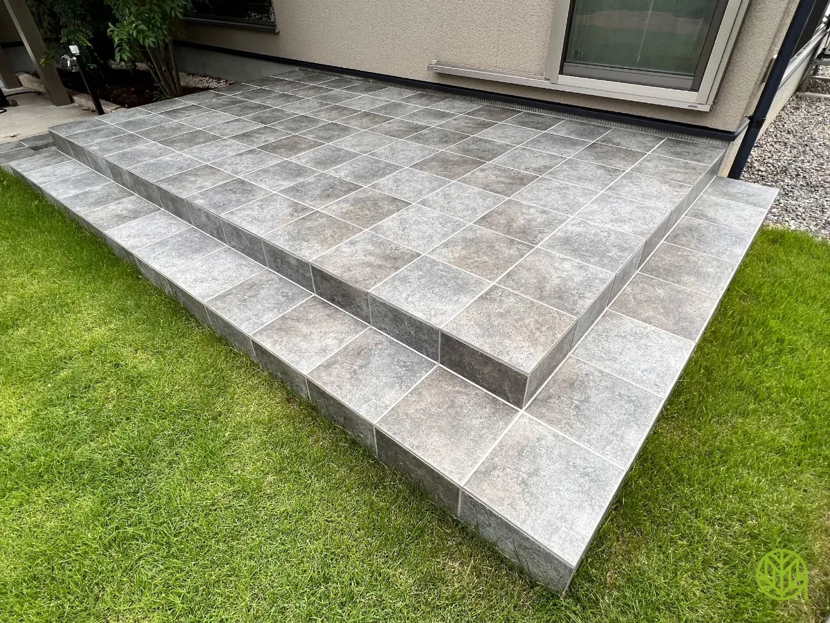 お庭のタイルデッキ・テラス雑草対策にもグリーンケアお庭と外構、エクステリアのデザイン&リフォーム。