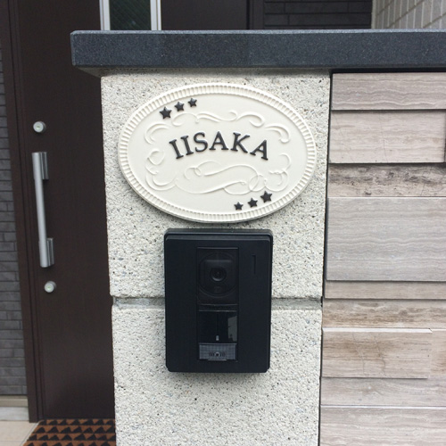 オリジナル陶板表札ショップ 陶器表札 K49アーリーアメリカン 取付写真とご感想 I様 - 「陶器表札・オーダーメイド表札の専門店表札 ショップ陶板アート」川田美術陶板。