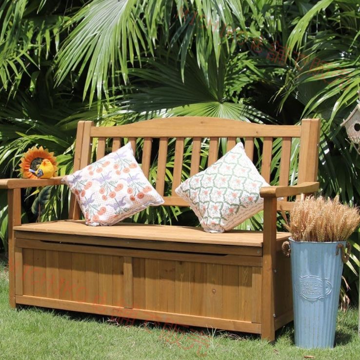 ベンチ ガーデンベンチ 木製物置 屋外用 天然木材収納庫 ベンチ キャビネットベンチ ガーデニンググッズ ガーデンファニチャーベンチ 収納屋外, 木製ベンチ, 収納ベンチ。