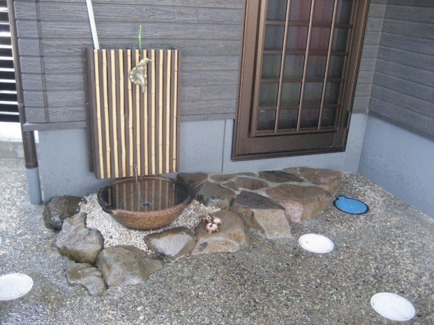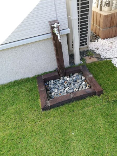 和テイストのおしゃれな立水栓があるお家仙台市外構 庭 エクステリア海馬工苑。
