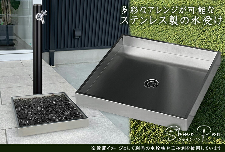 水受け ガーデンパン シャインパンスクエア ステンレス製 水受けのみ おしゃれ 立水栓 水栓柱用 水栓パン オンリーワンクラブ スプリット タイプC比較品サンガーデンエクステリア本店WEBショップ。