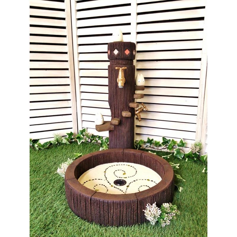 丸太調アレンジ立水栓柱&シンクセット 立水栓水栓柱立水栓セット庭水道外水道ガーデンパン水受け。