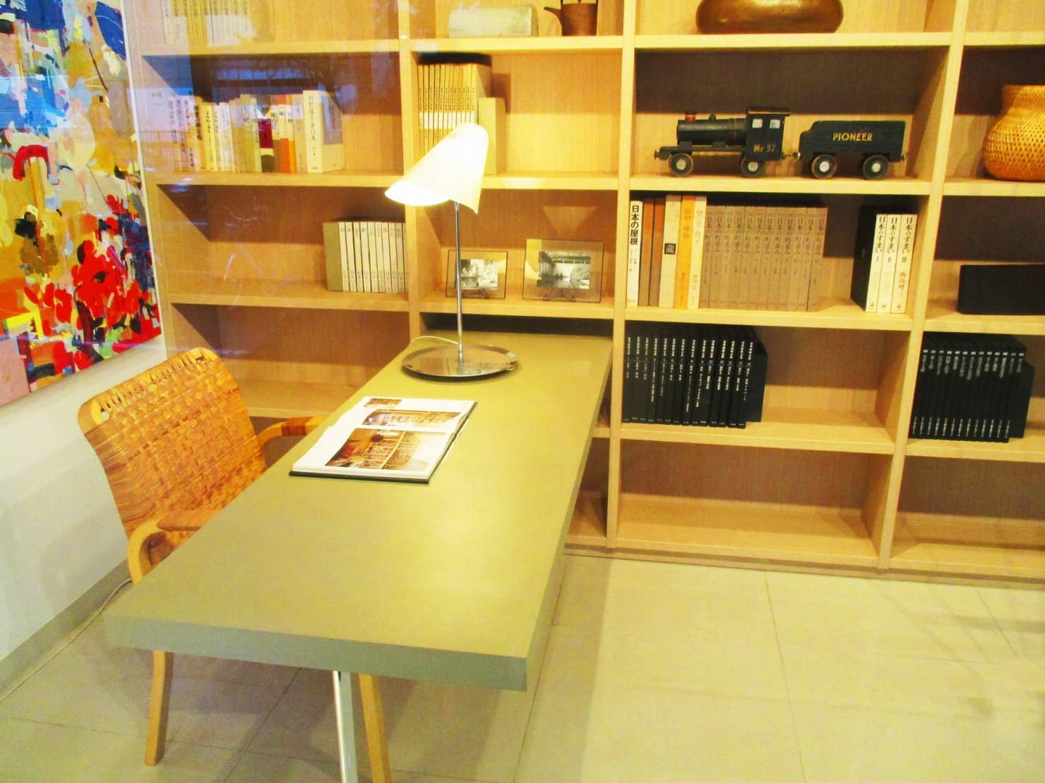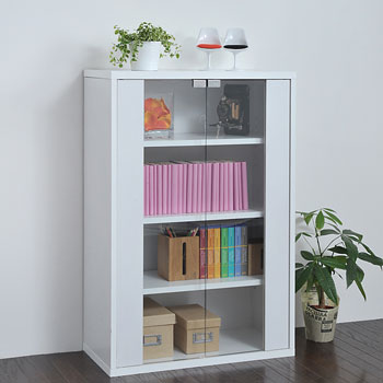 本や小物をホコリから守ってくれるガラス扉付き本棚。