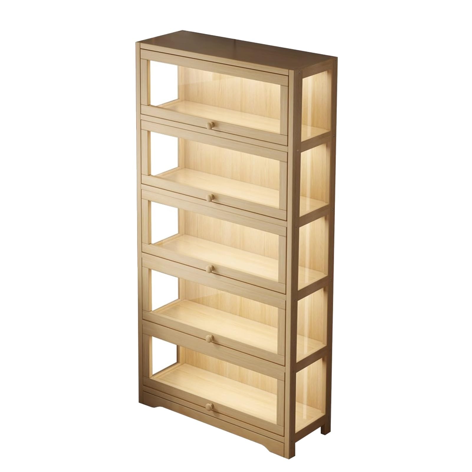 本棚 書架 本箱 書棚 リビングルームの寝室のホームオフィスの収納ラックの本棚のための引き出しオーガナイザー棚付きの5層の本棚 カラ ぼん家具完成品設置付き本棚 書棚 扉付き 3段 カラーボックス ラック 木製 収納棚 リビング 寝室 収納 隙間収納 ホコリよけ。
