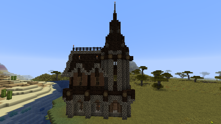 OCスプルースの屋根とトリムが付いた石造りの家 : r Minecraft。