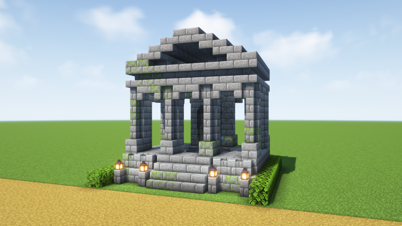 マイクラ建築:石の神殿。内部の装飾に壁泉。簡単10×10。No.131SOUのマイクラログ。