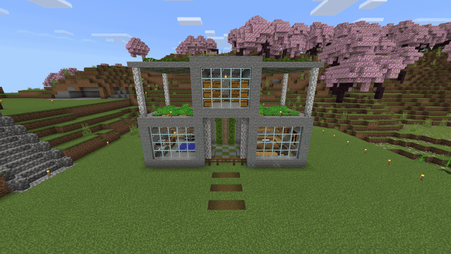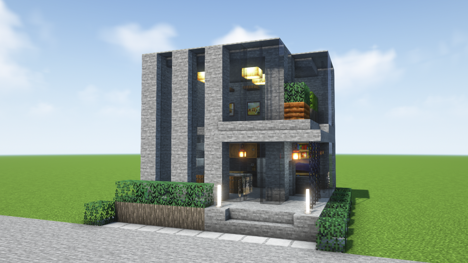 マイクラ建築 石系ブロックをメインに使ったモダンハウスを作ってみた。