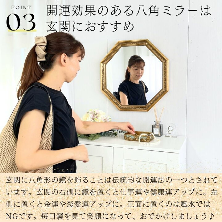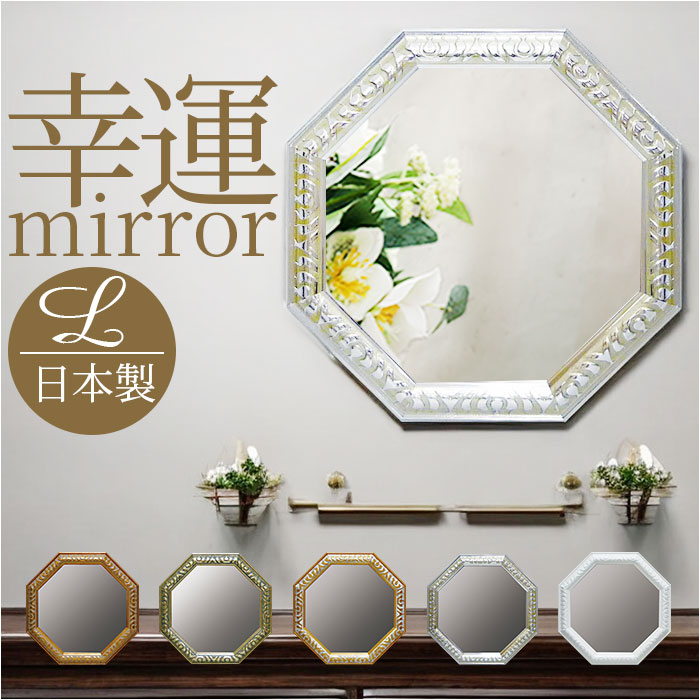 10日限定5%OFFクーポン鏡 壁掛け 八角形鏡 アンティーク ミラー 玄関 鏡 八角形 ウォールミラー 八角 優美 L 37cm 八角鏡ホワイト ゴールド シルバー ホワイトゴールド 全4色 日本製 壁掛けミラー トイレ 洗面 洗面鏡 化粧鏡 メイク鏡 おしゃれ 新生活鏡専門店。
