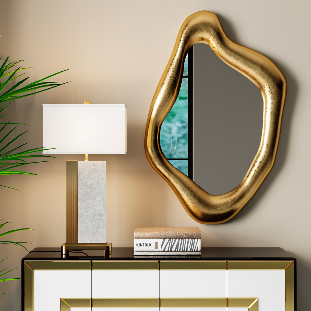 鏡 壁掛け 壁掛け鏡 ウォールミラー 壁掛けミラー ミラー 八角形 おしゃれ 玄関 洗面所 洗面 玄関鏡 八角鏡 トイレ 風水 開運 ゴールドブラウン キキ L 33cm。