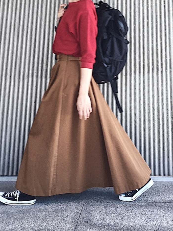 秋服に最適なブラウンと赤のコーディネートTikTok。
