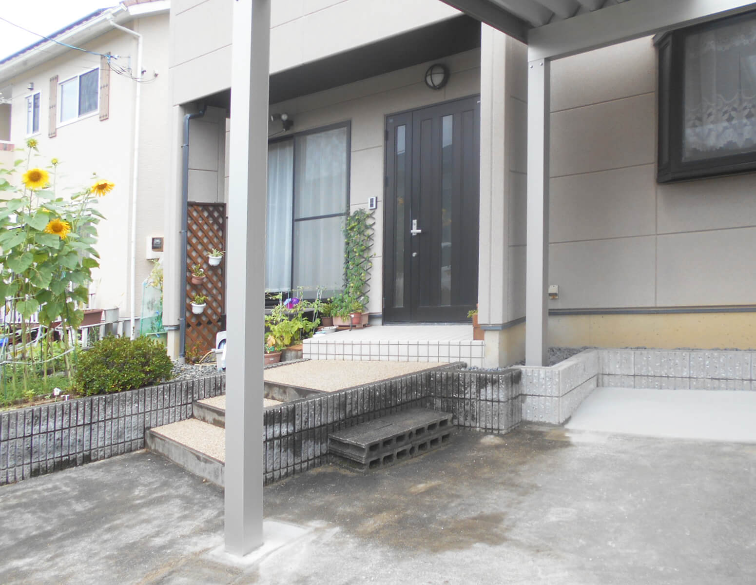愛知県犬山市 玄関前の階段を撤去して駐車場を広く。