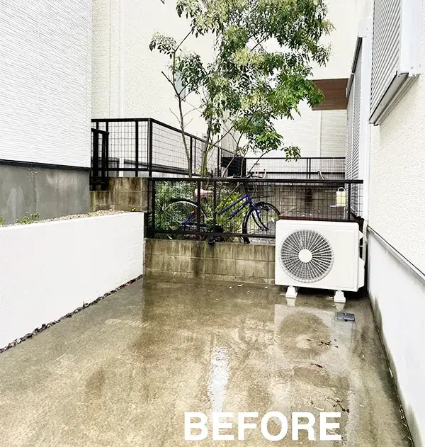 玄関前の花壇と門柱を撤去して自転車置き場にした事例大阪市此花区K様大阪・門真市・堺市・京都・奈良の植木屋村上造園。