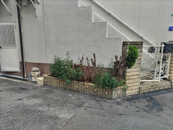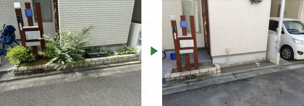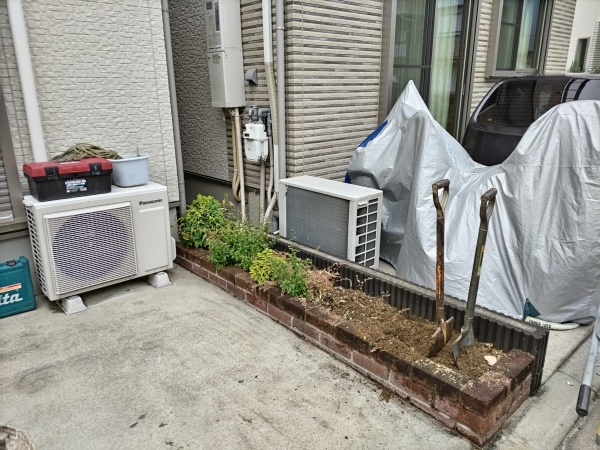 自転車置き場を作るために玄関前の花壇を1人1日で撤去した事例大阪府大阪市旭区Y様大阪・門真市・堺市・京都・奈良の植木屋村上造園。