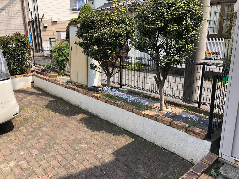 花壇を木ごと撤去して駐車スペースを拡大撤去後の壁を目立たなく補修 大阪市西淀川区大阪・門真市・堺市・京都・奈良の植木屋村上造園。
