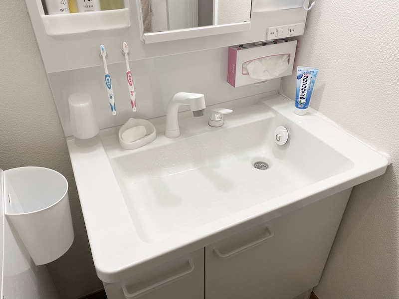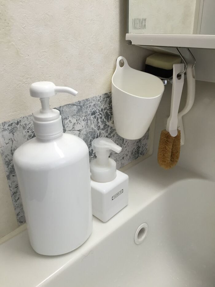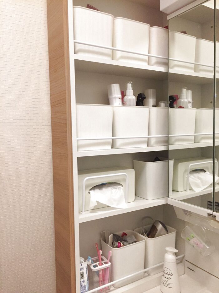 洗面所の収納アイデア41選 ワンアクション重視&浮かせてスッキリ!100均も大活躍!サンキュ。