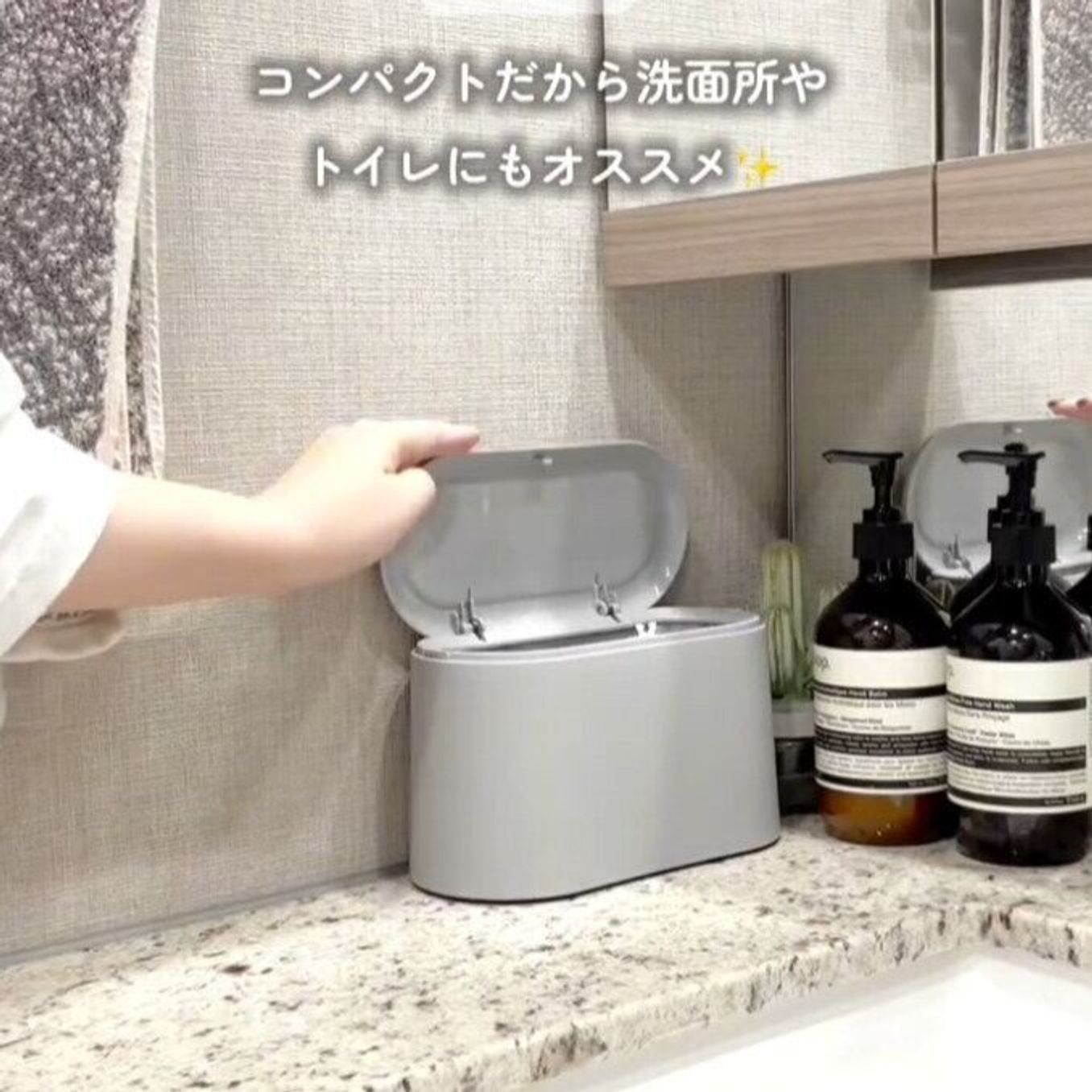 セリア 洗面所やトイレにちょうどいいサイズ!『浮かせる』ごみ箱が使いやすいサンキュ。