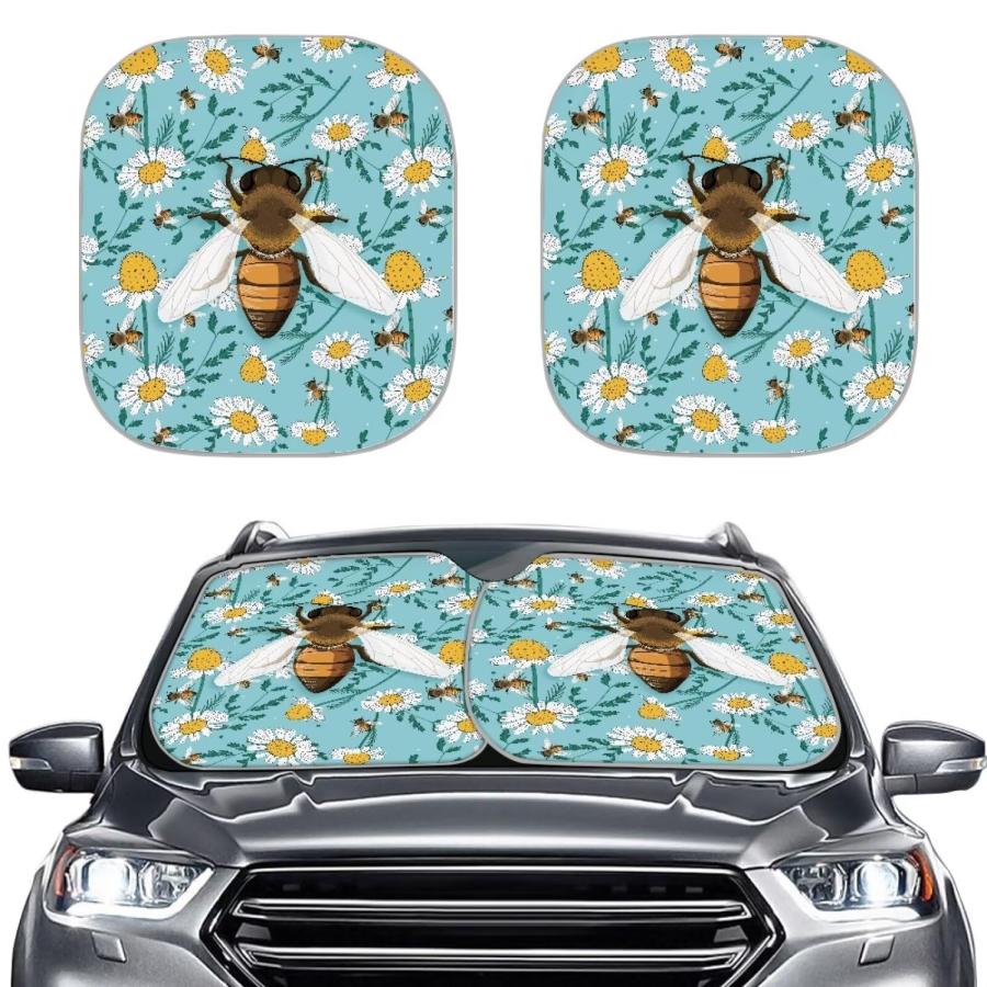 FOR U DESIGNS 車用フロントガラス用サンシェード 2点 かわいい蜂 花柄 自動車。