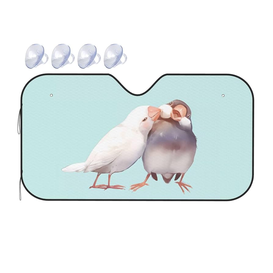 AmazonZateem 車のサンバイザー かわいい鳥 文鳥柄 バブルアルミ箔素材 完全遮光 日差しカット 断熱 遮光 汎用 自動車 フロント折りたたみ 紫外線対策 簡単取り付け 収納便利 車中泊でプライバシーを守る KHIY017サンシェード車&バイク。