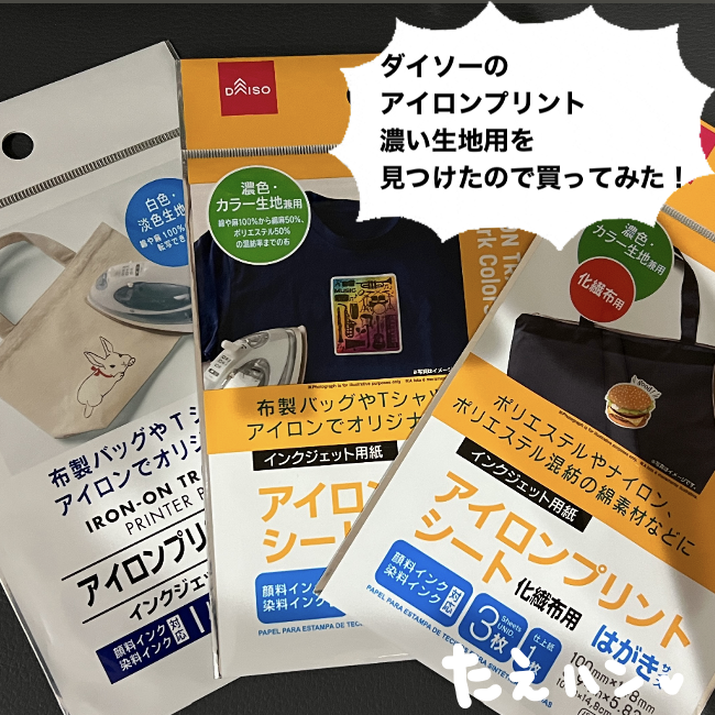 ダイソーのアイロンプリントシート濃い生地用を使ってみた 結果たえとドールのハンドメイド記録。