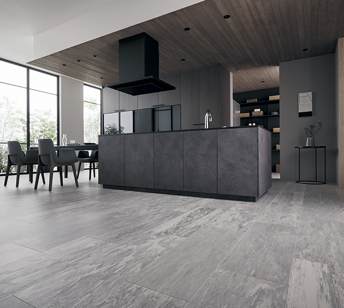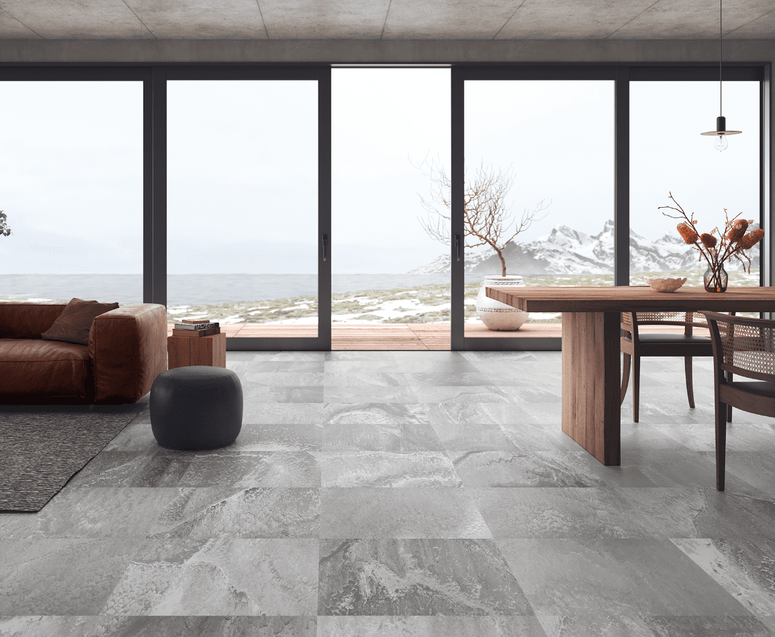 スタイリッシュモダンなコンクリート柄人気グレー床タイル。