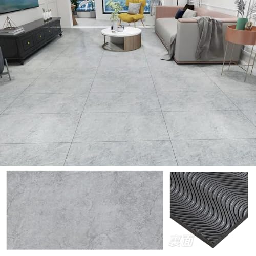 AmazonVEELIKE フロアタイル 床タイル グレー 大理石調 置くだけ 60cmx30cm 12枚セット 約1.3畳 床シート 床DIY床材 フロリング フロアシートリメイクシート フロアマット カットしやすい のり付き 防水 滑り止め 静音 耐熱 厚手 はがせる ノリ残せず 色褪せず賃貸。