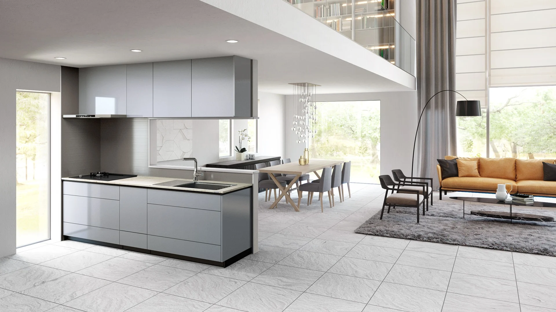 1階全室タイル床仕上げ!グレーインテリアのお住まい -ユニバーサルホーム福岡・佐賀エリア株式会社コスモスユニバーサルホーム福岡・佐賀エリア株式会社コスモス。