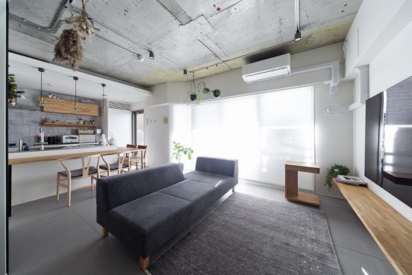 4枚目LDK グレーモルタル系の男前リノベ- リビングダイニング事例SUVACO スバコ。